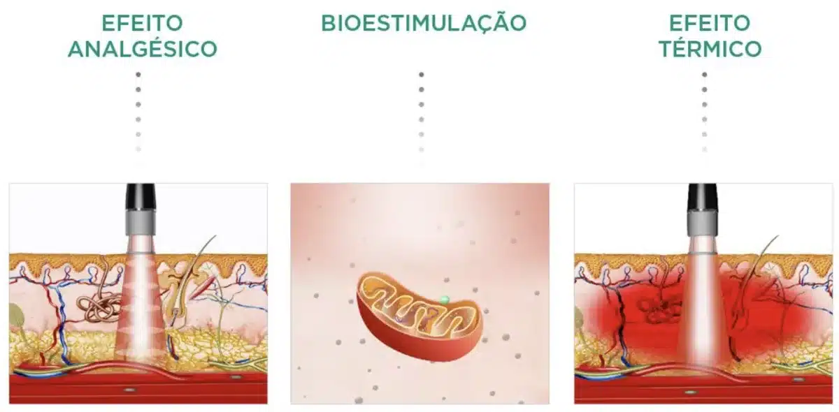 Com comprimento de onda na faixa do infravermelho (geralmente entre 980 e 1064 nm), a luz penetra até cerca de 10 cm, estimulando processos celulares essenciais para a recuperação tecidual.